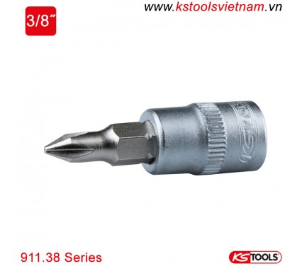 Khẩu bit socket đầu vít 4 cạnh 3/8 inch KS Tools 911.38 Series PH1-PH4