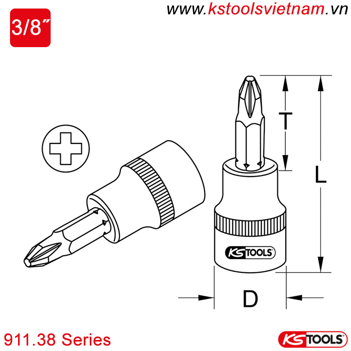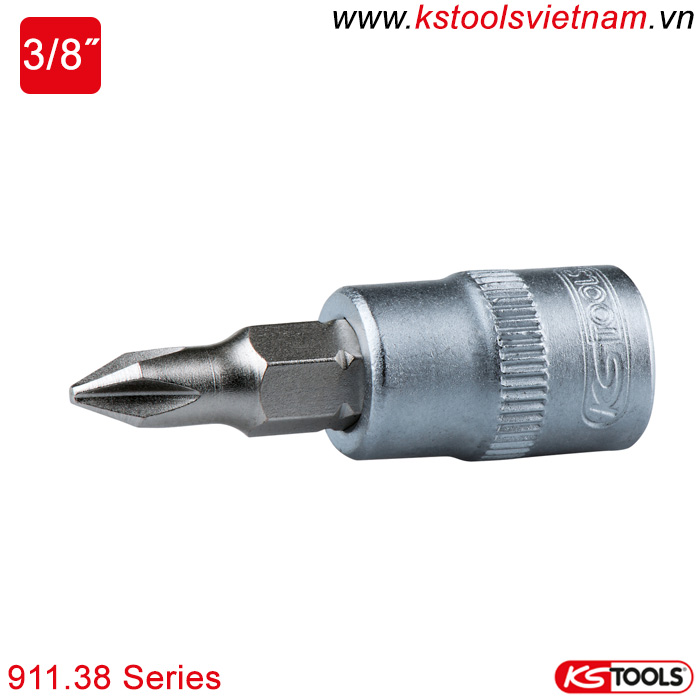 Khẩu bit socket đầu vít 4 cạnh (đầu PH) 3/8 inch KS Tools 911.38 Series PH1-PH4. Kết hợp tay lắc nhanh, cờ lê lực để siết mở bulong trong các thiết bị, máy móc trong nhà máy công nghiệp, gara ô tô. Hàng Germany, phân phối bởi KS Tools Việt Nam. Liên hệ: 0961 172 212.