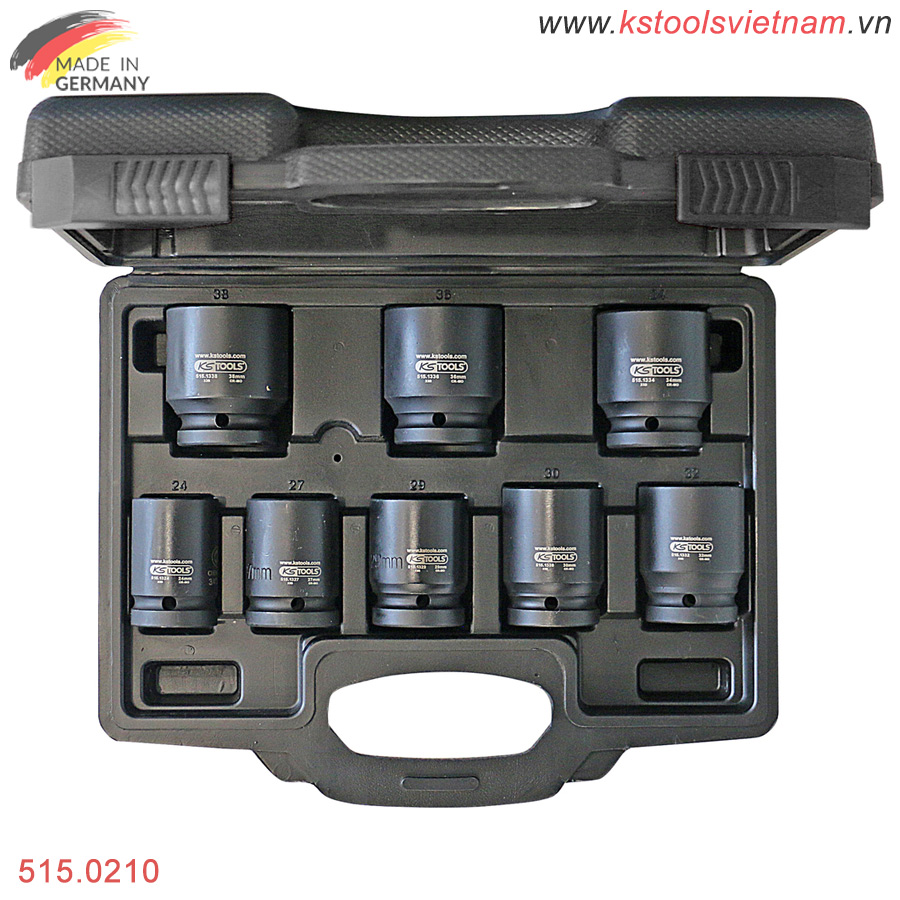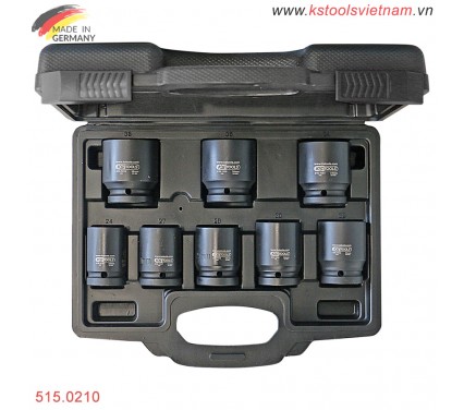 Bộ đầu khẩu lục giác Impact socket đen đầu 3/4 inch 8 chi tiết 515.0210 KS Tools từ cỡ 24 - 38mm. Chuyên dùng cho súng xiết bu lông, đai ốc thiết bị cho nhà máy công nghiệp, garage ô tô. Chính hãng 100% KS Tools - Germany. Liên hệ: 0961 172 212.